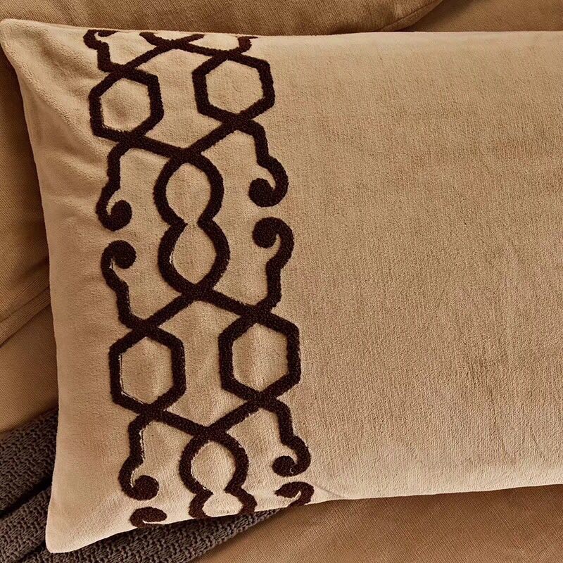 【工藝】高標(biāo)準(zhǔn)縫制 不同顏色的面料拼接 特種毛巾繡 床單均采用圓弧打裥貼邊 繡花內(nèi)襯全部采用精致歐根紗 隱形拉鏈做工 每一個細(xì)節(jié)都是在追求完美。可改床笠款